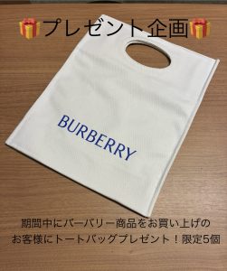 期間中、バーバリー商品をお買上げのお客様に、トートバックをプレゼントしております。